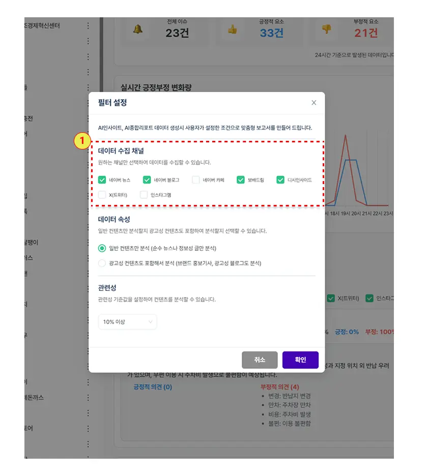 고객 반응이 어디에서 발생하든 놓치지 않고 수집하여, 브랜드를 둘러싼 여론·트렌드·이슈를 통합적으로 파악하기 위함입니다.
