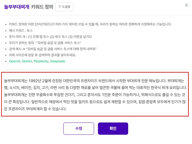 👉키워드 정의 화면 : 올바르게 키워드가 들어갔는지 확인해주세요
