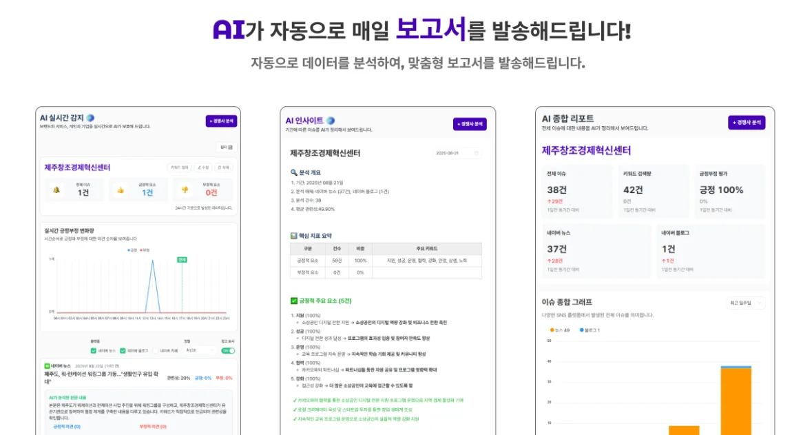 언급량, 감성 비율, 키워드, 채널별 반응까지.