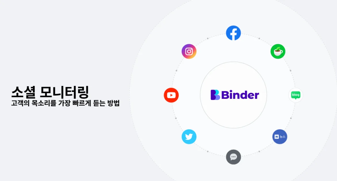 국내 소셜리스닝 서비스 바인더가 있습니다.